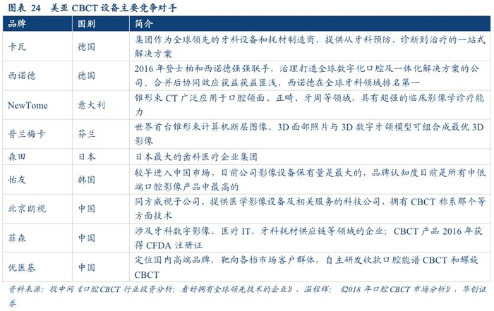 国内企业在高端医疗影像领域的起步较晚,美亚光电在该领域的竞争对手主要为国外厂商,主要包括韩国怡友、德国卡瓦、德国西诺德、芬兰普兰梅卡等企业。公司的国内竞争对手目前主要为北京朗视、深圳菲森等企业。