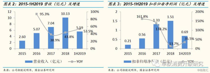2015-2018公司年均营收复合增速57%,年均扣非归母净利润复合增速92%。2015-2018年,公司营收由2.60亿元增长至10.13亿元,扣非归母净利润由0.21亿元增长至1.51亿元。1H2019,公司实现营收5.59亿元,同比+53.5%;扣非归母净利润0.69亿元,同比+35.5%。