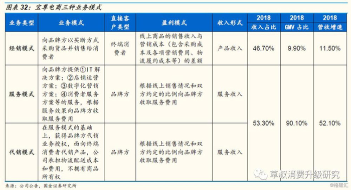 目前三家公司业务侧重点有所不同,壹网壹创是服务收入占比最高的公司:由于经销业务和分销业务的盈利来源均为进销价差,我们将其定义为产品销售的业务模式,将不涉及采购产品定义为提供服务的业务模式。