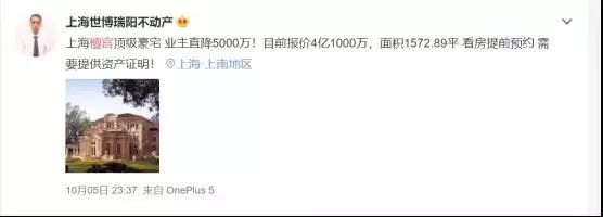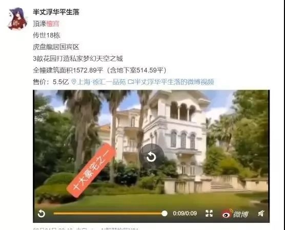 还有一条9月份发布的微博称,檀宫一套1572.89平的别墅,作价5.5亿出售。