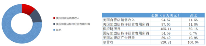 跟其他餐饮连锁加盟店不大一样的是,达美乐比萨的主要收入来源是供应链收入,公司通过向特许经销商销售配料获利,这部分的业务收入长期占比高达60%左右。Q3单季该业务营收占比继续高达59.1%,而美国本土店铺的披萨业务收入仅占总营收的11.6%。不过从营业利润上看,最赚钱的业务还是美国本土店铺经营,营业利润占比高达50%,而供应链业务的营业利润只占不到30%。