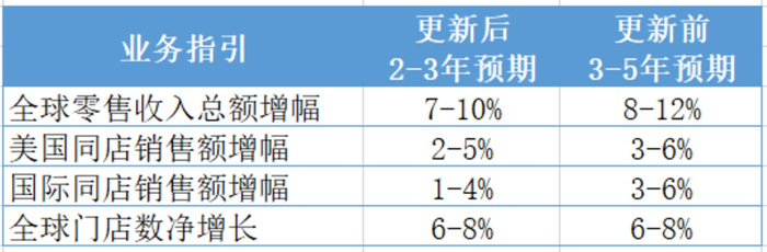 全球门店净增长幅度则仍与此前3-5年指引持平。