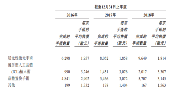 提供视力矫正服务所产生的收益主要与外科医生及眼科医生完成的手术有关。主要是屈光性激光手术(包括全飞秒激光手术及飞秒激光联合准分子激光角膜原位磨镶术)、后房型人工晶体(ICL)植入术、晶体置换手术(包括单焦点及三焦点晶体置换手术)及PRK/LASEK或ICRS植入手术。