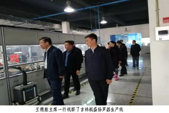 在吉林航盛电子有限公司(以下简称“吉林航盛”),王德胜主席一行视察了企业产品生产线,详细了解了企业发展情况。吉林航盛源自于1970年成立的军品扬声器厂,迄今已有40余年的历史,公司始终专注于扬声器、功放、低音箱、报警器以及新能源汽车行人声音警报系统等相关衍生产品的研发、制造和销售。拥有各类专利百余项,先后被认定为省级“企业技术中心”“高新技术企业”“科技型创新企业”,今年1-9月份已实现出口1亿元。