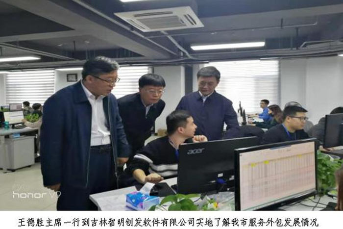 王德胜主席一行最后到吉林智明创发软件有限公司视察,该公司于2015年10月在吉林市高新区成立,是日本野村综研集团旗下智明创发软件集团的全资子公司,主营业务为海外软件外包及IT技术服务,业务领域涵盖了证券、金融、保险、通信、流通及电子商务等方面。公司在省商务厅、市商务局的大力扶助下高速发展, 2018年离岸外包业务实现210万美元,今年预计可实现2000万元。