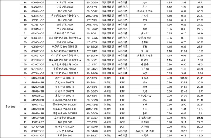 附表:主要宽基指数基金一览表