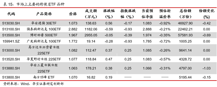 QDII-ETP方面,上日德国DAX指数下跌0.17%,纳斯达克100指数下跌0.93%,标普500指数下跌0.39%。今日盘中美元指数上涨0.19%,在岸人民币兑美元升值0.11%,欧元兑美元下跌0.17%。今日华安德国30ETF上涨0.56%,预估折价率0.92%;国泰纳斯达克100ETF下跌0.59%,预估折价率0.21%;博时标普500ETF下跌0.05%,预估折价率0.35%。