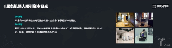 再从投资角度跟大家分享一下机器人行业2018、2019年的融资情况。就2018年整体而言,融资环境是不好的,不管是募资还是单个的融资都是冬天。但是2018年全年,商用机器人本体部分的融资表现还是不错的,有13家商用机器人的公司获得了融资。2019年截至7月26日,一共有98家机器人企业获得了融资,激光雷达、做模组的也在其中,其中做本体的企业有29家。
