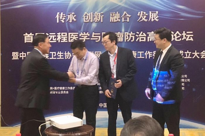 原国家卫生部部长高强,国家卫生计生委原副主任、国家中医药管理局原局长王国强等国家领导人为中国民族卫生协会互联网+医疗健康工作委员会常务副主任兼秘书长张育铭等同志颁发证书