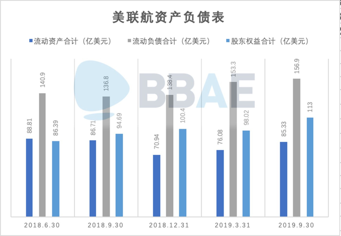美联航流动资产及债务情况