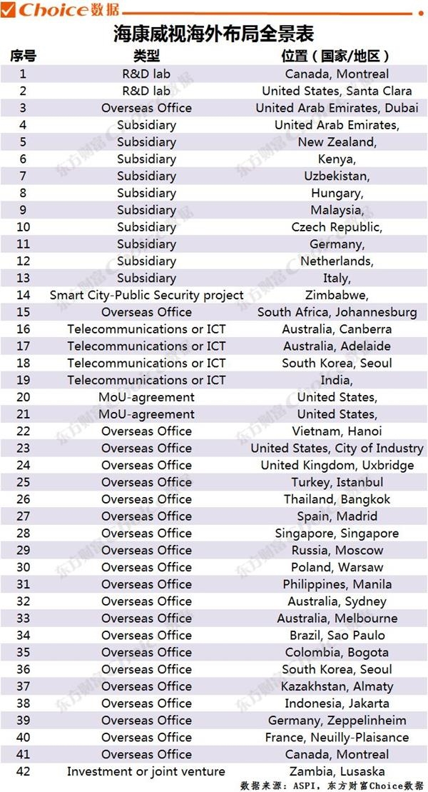 原标题:华为、阿里、腾讯、海康威视……中国科技巨头们的海外势力版图全解!(附详细数据) 来源:东方财富Choice数据