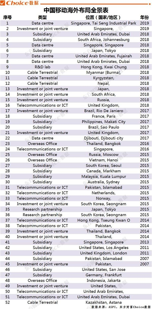 相比几家互联网巨头,三大运营商在海外的布局主要以建设光缆为主,其他落地的基础设施较少,