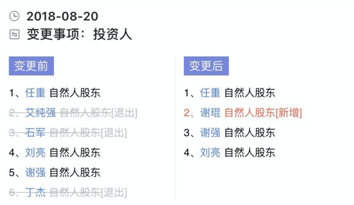 记者注意到,上述智童启德公司在2018年8月、12月期间,工商信息中进行了两次投资人变更。8月,公司原6位自然人股东有3位退出,新增1位自然人股东谢琨。12月,爱乐乐享获老鹰基金A轮融资,但金额未披露。