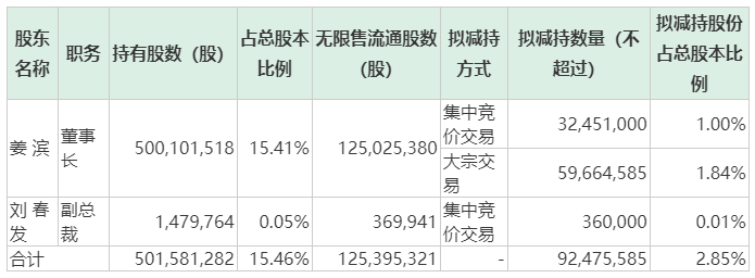 一则是减持公告:公司董事长姜滨和副总裁刘春发拟自减持计划公告之日起15个交易日后的6个月内,以集中竞价交易的方式分别减持不超过公司总股本1%和0.01%的股份;另一则是回购公告:公司拟耗资5亿元-10亿元回购股份,用于员工持股计划或股权激励。