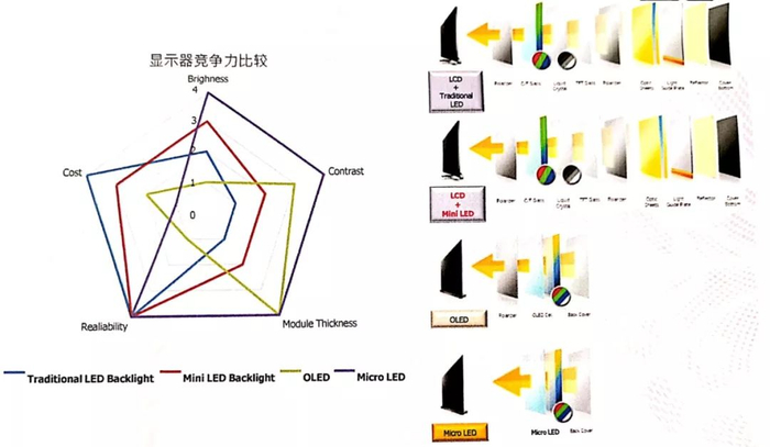 在国内多方政策与市场需求的双重导向下,Mini LED背光就是应时而生的新技术。它在亮度、信赖性上有较高的性能优势,搭配薄型化方案,以及成本较OLED显示器低,将有机会抢攻高阶显示市场,可延长液晶显示器的生命周期,并带入下一个时代应用领域,为陷入末路的TV产业注入新的源头活水。