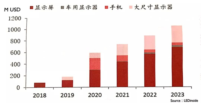 近年来,Mini LED作为市场前景广阔的新技术而备受行业关注,各大厂商对Mini LED表现出了极大的热忱,纷纷布局以抢占市场先机。根据LEDinside数据显示,下一代Mini LED背光技术将是各家厂商的开发重点,预估至2023年Mini LED市场规模达10亿美元。其中显示屏应用成长速度最快,2018年-2023年复合增长率预计超过50%。