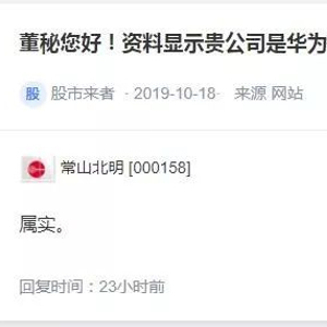 “属实。”常山北明10月21日20分许在互动易平台上给出这一回复。