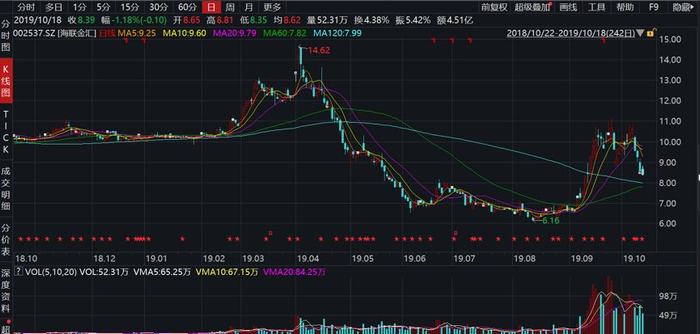 对照上半年净利润下滑46.95%的数据,三季度业绩预告净利润下滑超过200%,也意味着三季度海联金汇盈利能力在进一步下滑。