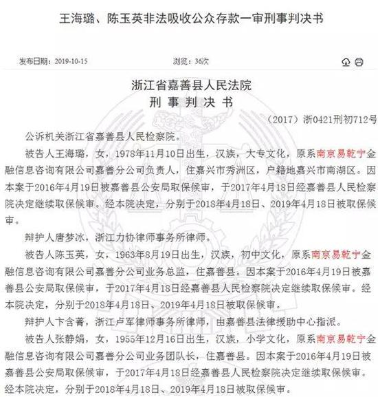 除了浦口分公司,易乾宁在各地的分支机构,如海宁分公司、嘉善分公司、台州分公司等多家分公司负责人及相关责任人员日前也陆续被判刑。