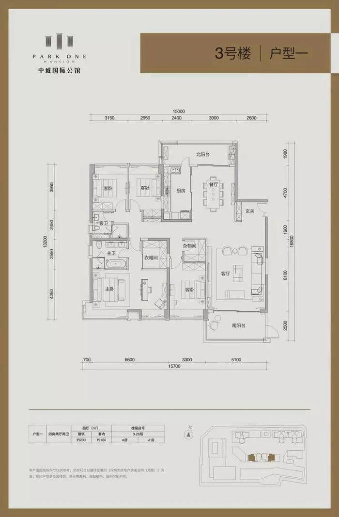 深业中城本次主要推售的是建面132-233㎡大户型住宅。