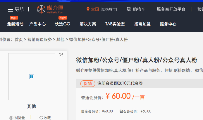 提供这样的服务,到底需要多少钱?媒介匣官网称,微信加公众号僵尸粉价格为130元/1000个起,微信公众号真人粉60元/100个,个人微信号真人粉60元/100个。