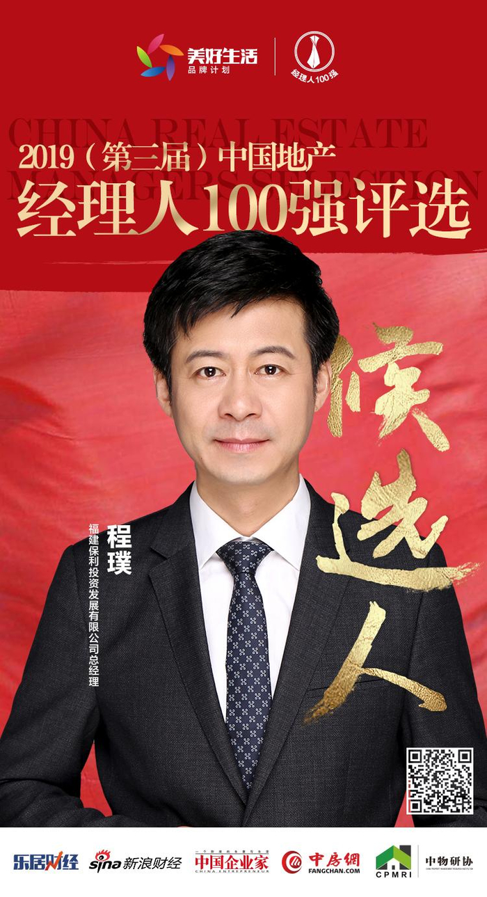 乐居财经讯 由乐居财经、新浪财经、中国企业家、中房网、中物研协联合主办,中国房地产业协会、中国物业管理协会、全国工商联家具装饰业商会的共同指导,2019(第三届)中国地产经理人评选于10月10日正式启动。10月23日,福建保利投资发展有限公司总经理程璞获媒体提名,成为“2019中国地产经理人100强”候选人。