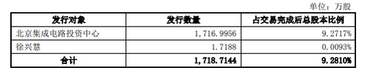 2016年9月,耐威科技以发行股份的方式作价约7.50亿元,购买北京集成电路投资中心、徐兴慧合计持有的瑞通芯源100%的股权,已达到间接间接持有目标公司赛莱克斯98%股权的目的。最终,此次交易支付的股份对价为74987.5028万元,当时按照发行价格 43.63元/股计算,对应的非公开发行股票的数量合计为1718.7144万股。本次交易后,北京集成电路投资中心也成为了公司的第二大股东。