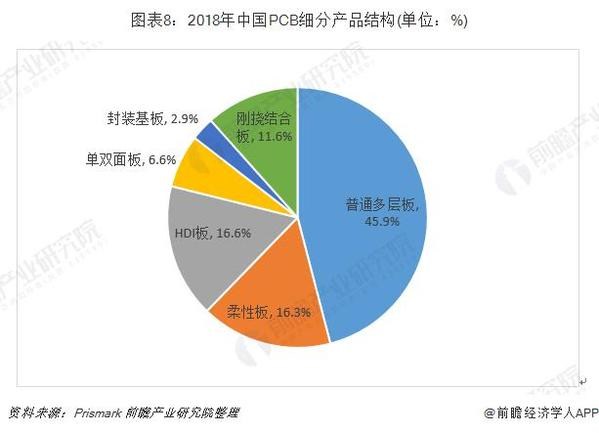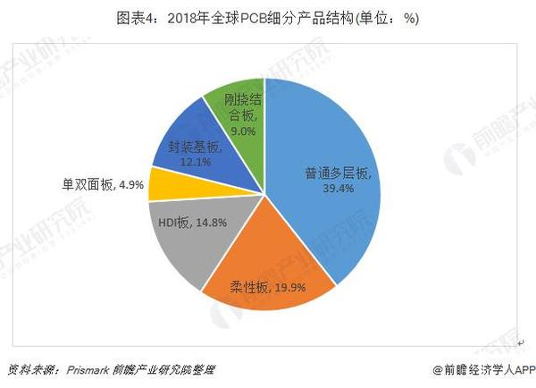 根据Prismark的统计,2018年全球PCB细分产品的市场结构如下: