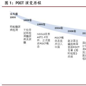 POCT在历史上的身影可以追溯到公元前1500年的蚂蚁检测糖尿病。现代以来,1959年开始以干化学试纸检测血糖及尿糖,至1995年对POCT概念正式界定。