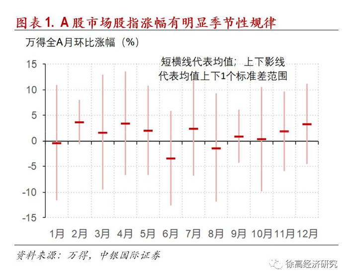 A股市场“季节效应”的存在原因值得分析。宏观经济数据中会有季节性波动很容易理解,因为很多经济活动与季节相关(比如水电发电量在夏季丰水期季节性走高,北方地区的固定资产投资开工率在冬季季节性地走弱)。但A股市场中为什么会存在季节效应是需要说几句的。股市是一个被预期推动的市场,如果市场在每年特定时刻会规律性地变化,那投资者就应该会试图通过交易这种规律性变化来获利。他们的交易行为又会反过来让这种规律性变化不再出现。不过,尽管股市投资者可以设计投资策略,但他们的交易能力是受到其他一些因素影响的。这些其他因素的季节性变化就会在A股市场造成季节性波动。