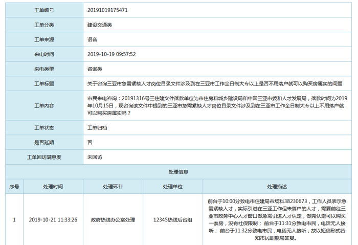 来源:海南省三亚市12345政府服务热线网站截图