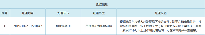 在上周,三亚市政府官网12345服务热线回复确认,对于外省户籍人才,满足全日制大专以及以上学历、在三亚实际工作满一年、且缴纳一年社保及个税的,可在海南省购买一套房产。