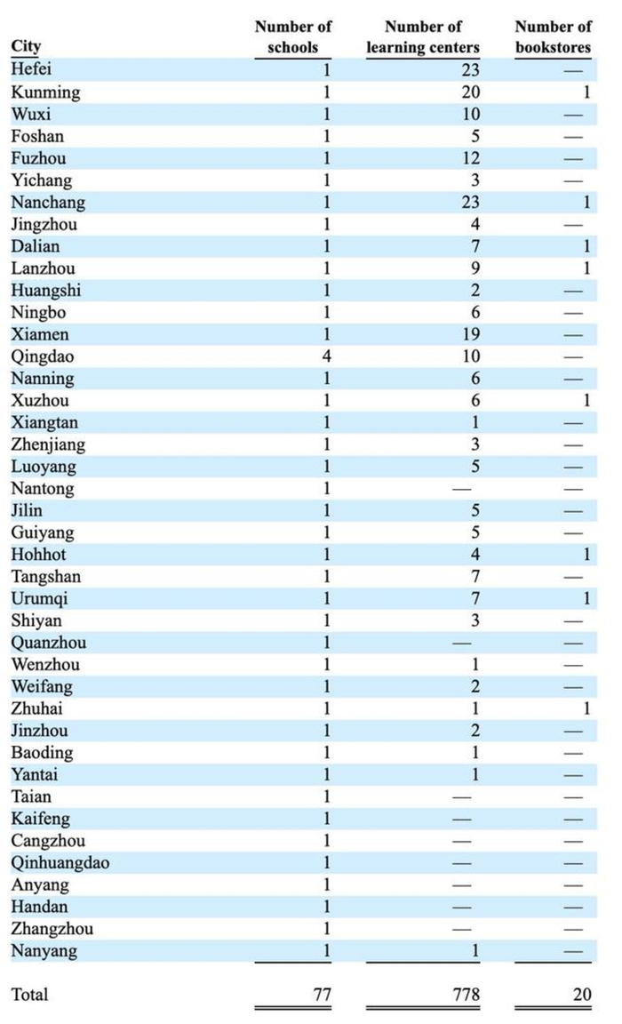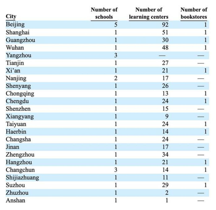 新东方教学点及学校城市分布情况(2019财年数据)