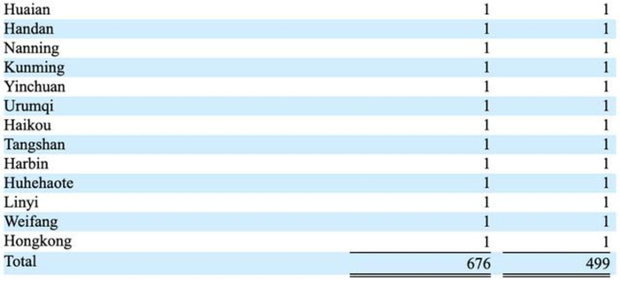 好未来教学中心城市分布情况(2019财年数据)