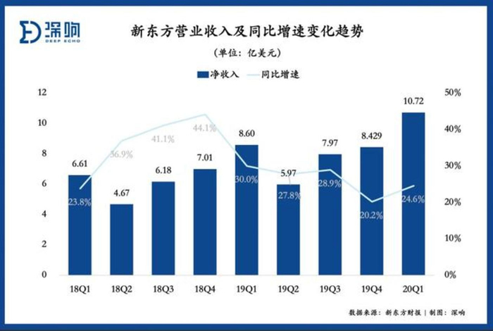 新东方在本季收入和利润录得双增长,不过与2018财年的营收高速增长相比,如今新东方的营收增长速度已经放缓。