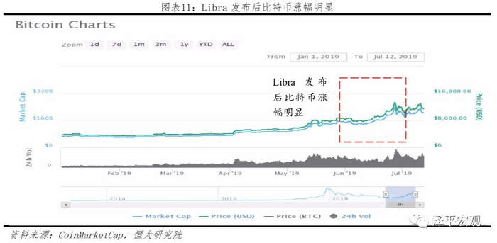 因此Libra和比特币不会构成直接竞争关系。事实上,作为一种数字货币,Libra的推广和普及将使比特币被更多人所接受和认可。自Libra白皮书6月18日公布以来,比特币涨幅明显。