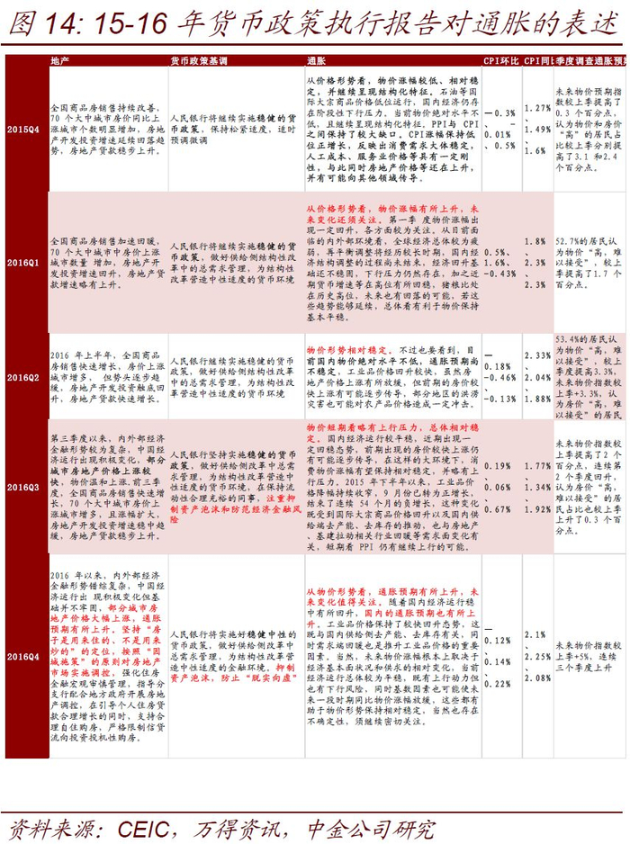 由于此次通胀形势并非传统的货币推动型通胀,而更接近2015-16,也值得参考15-16年货币政策执行报告中对于通胀的表述以及当时的货币政策操作(图14)。
