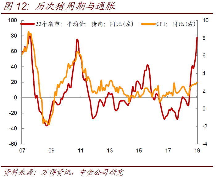 当然需要注意的是,这一次猪周期的启动可能不同以往,非洲猪瘟导致生猪死亡率较高且目前没有有效的疫苗控制,因此猪肉价格上行的幅度超过了以往几次猪周期,因此短时间内CPI仍有一定上行压力。但在需求走弱、商品价格回落的情况下非食品走弱的趋势仍未结束,因此通胀的结构性特征在未来一段时间内或将更为明显。