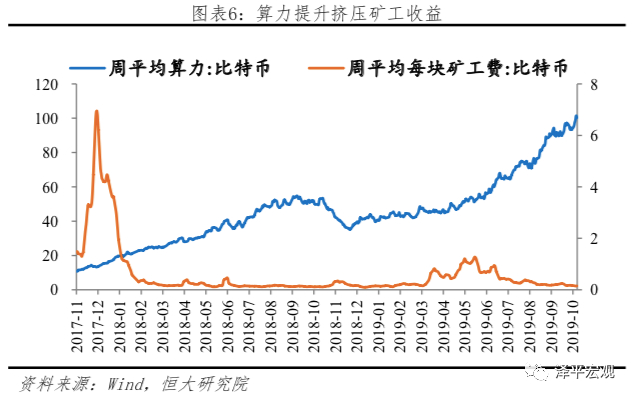 比特币的区块大小限制使得挖矿收益降低,挖矿成本居高不下。为了防止比特币网络的超载风险并鼓励全网算力参与挖矿,中本聪最初将比特币的区块大小限制为1M。但是随着比特币的接受程度提高,挖矿和交易需求的提升,1M的区块大小限制使得网络容易发生拥堵。全网算力的提升造成比特币的挖矿难度和成本增大,矿工的收益也受制于挖矿难度增加而减少。根据BTC公布数据,截止2019年10月24日,比特币全网周平均算力为98.87EH/s,而2018年10月19日数据仅为51.41EH/s,增长幅度达92.3%,挖矿难度也迅速提高,从去年同期的7.18T达到目前的13.69T。