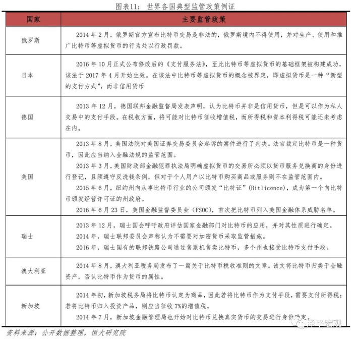 对比不同国家和地区的监管政策可以看出,美国和新加坡等国对比特币的监管相对宽松,明确比特币不具有信用货币地位,但可作为金融资产进行投资。中国、法国、日本以及欧盟等国家和地区对比特币出台了比较严格的监管措施,比特币被认定并非真正意义上的货币,不能作为货币在市场上流通使用,但是仍未制定相关法律政策维护投资者利益。我们认为监管的相对宽松和立法的相对迟滞是比特币泡沫持续膨胀的重要外部因素。
