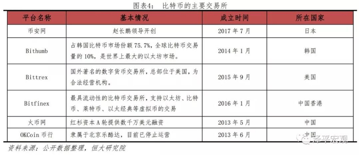 比特币交易市场集中度很高。海外市场上,主流交易所占据大部分市场份额,新生交易所通过差异化定位以获取客户。国内市场上,2017年之前比特币交易平台呈现火币网、OKcoin和比特币中国三足鼎立的态势,2017年9月央行联合七部委发布《关于防范代币发行融资风险的公告》,要求各类ICO立即停止,各大交易平台相继停止运营。