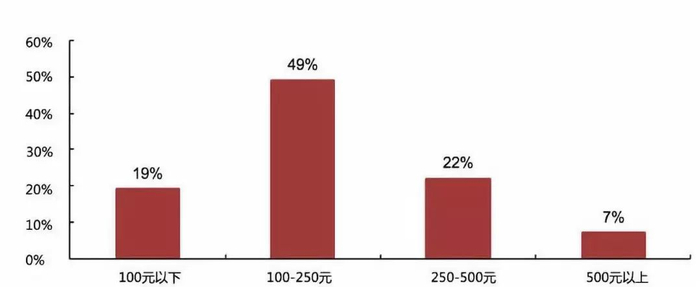 图:单支护肤品消费额在 250 元以下的消费者占比高;Source:微博数据中心,财通证券