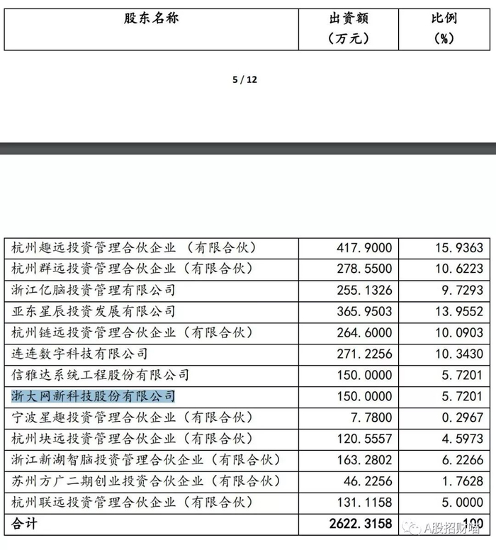 此外,截止2018年5月,浙大网新(SH:600797)则直接持有其5.7%的股权。