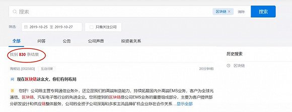 据统计,截至27日21点,在深交所的互动易上,这两天有830个问题涉及区块链。
