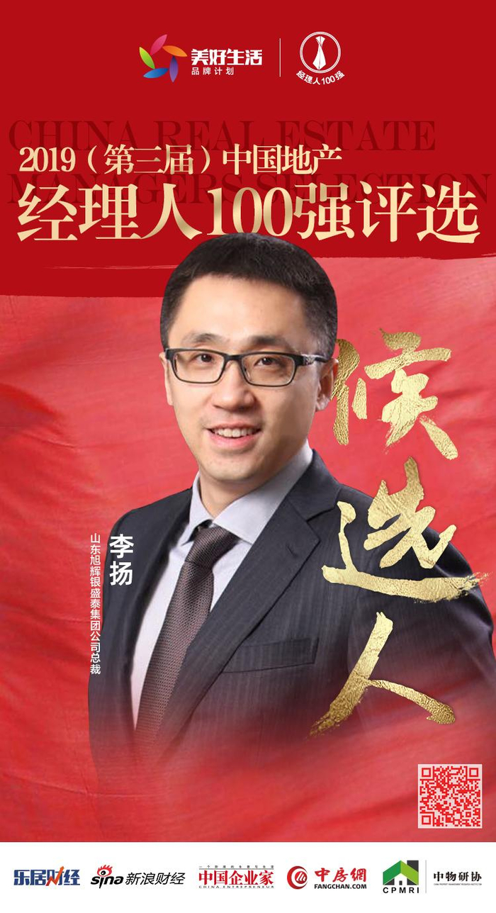 乐居财经讯 由乐居财经、新浪财经、中国企业家、中房网、中物研协联合主办,中国房地产业协会、中国物业管理协会、全国工商联家具装饰业商会的共同指导,2019(第三届)中国地产经理人评选于10月10日正式启动。10月28日,山东旭辉银盛泰集团有限公司总裁李扬获媒体提名,成为“2019中国地产经理人100强”候选人。