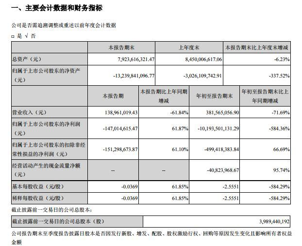 乐视网(300104)10月28日晚间披露三季报,公司前三季度实现营收3.82亿元,同比下滑71.69%;净利润亏损101.94亿元。公司根据2019年前三季度案件判决及进展情况,计提乐视体育、乐视云案件负债约98亿余元,直接导致前三季度业绩巨亏。