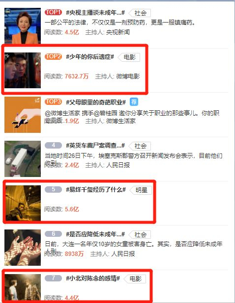 而这几天的热搜,早已被《少年的你》的电影承包了。