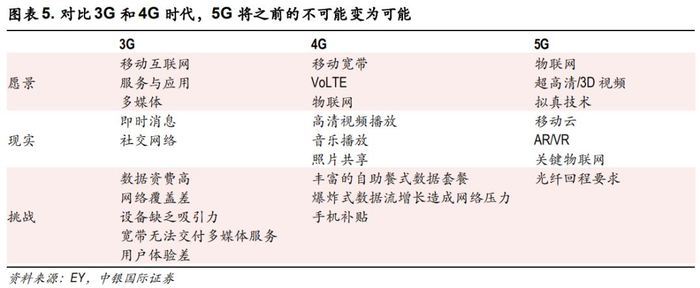 5G对信息的传输速递的提升和延时的降低,将改善物联网使用场景,给芯片、传感器以及物联网终端等领域带来投资机会,同时5G在网络带宽、峰值速率、单位面积连接数等指标上都远超4G,直击AR/VR等应用的痛点,对AR/VR产业链中设备等相关开发升级带来充足的基础技术支撑,助力产业重回上升通道。区块链和云化服务也将在5G的大宽带、高可靠高效能的网络连接能力以及安全优势下,突破产业扩张技术难题,加速创新融合,迎来新一波投资热潮。