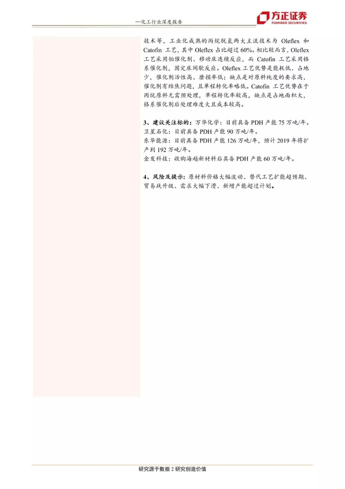 建议关注标的:万华化学:目前具备PDH产能75万吨/年。