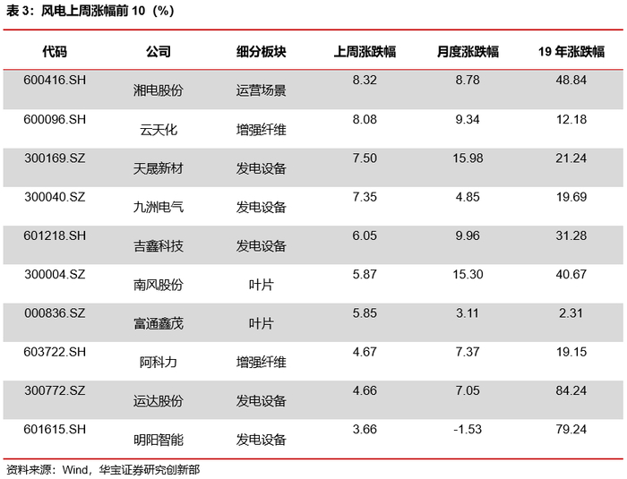 风电:原料端玻纤和钢材价格持续下滑,风机零部件和整机厂商成本可控,毛利情况整体较好,叠加下游需求向好,风机装机量同比增加,整体板块业绩较好。